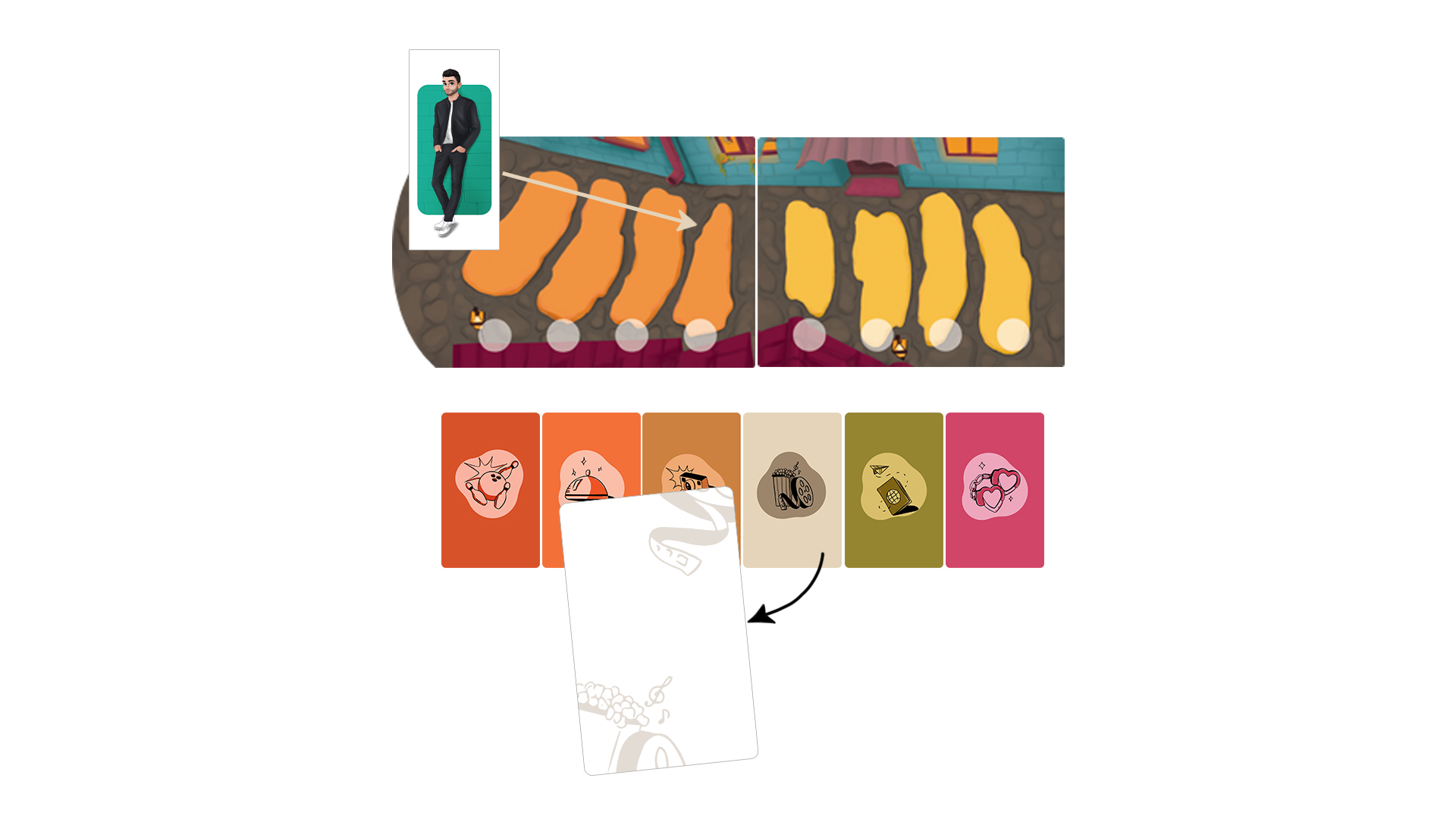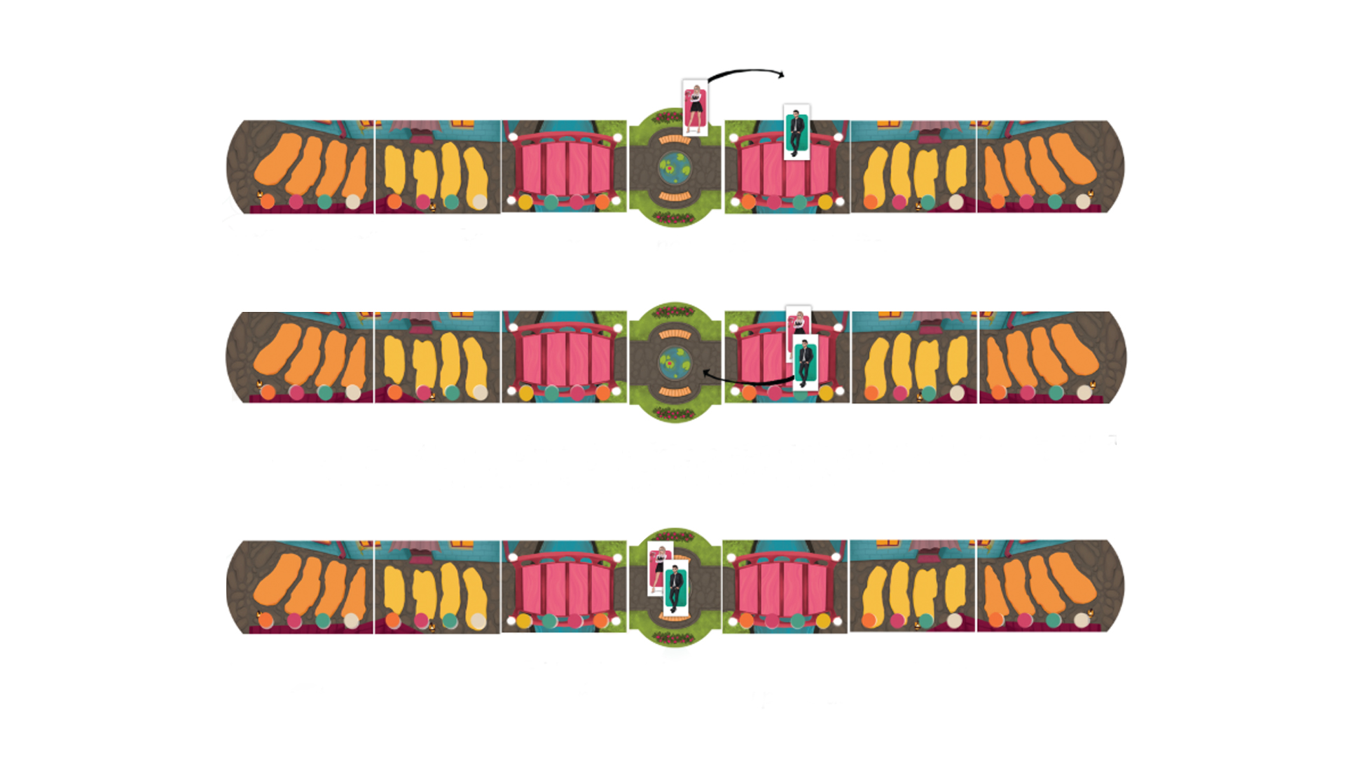 (hráč, ktorý prejde najdlhšiu časť cesty, sa stáva víťazom a vezme si jednu kartu odmeny z balíčka odmien)